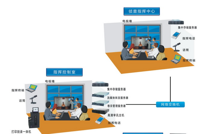 集成模拟矩阵、数字矩阵等设备和技术,便于利用公检法三级专网,组建大型讯(询)问监控指挥系统;