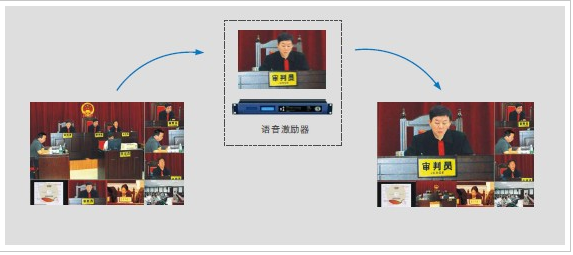 在法庭审判的过程中,通过语音激励功能可以实现谁发言大屏幕的特写画面就显示谁,便于法庭在座的所有人和远程观摩的观众看清发言人。系统支持开启/关闭语音激励功能。